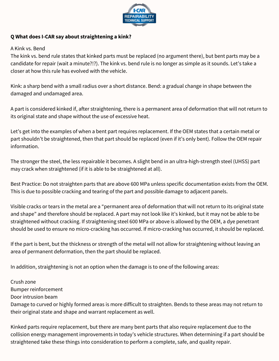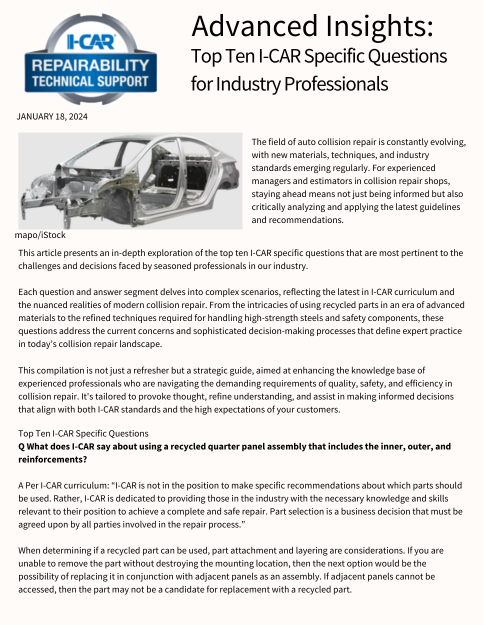 Top Ten I-CAR Specific Questions for Industry Professionals