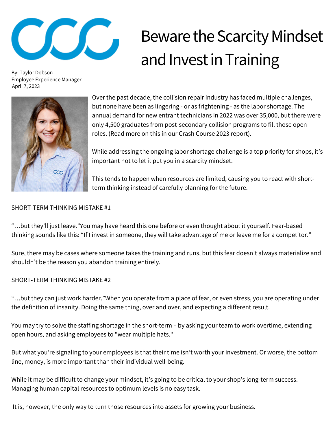 Beware the Scarcity Mindset and Invest in Training