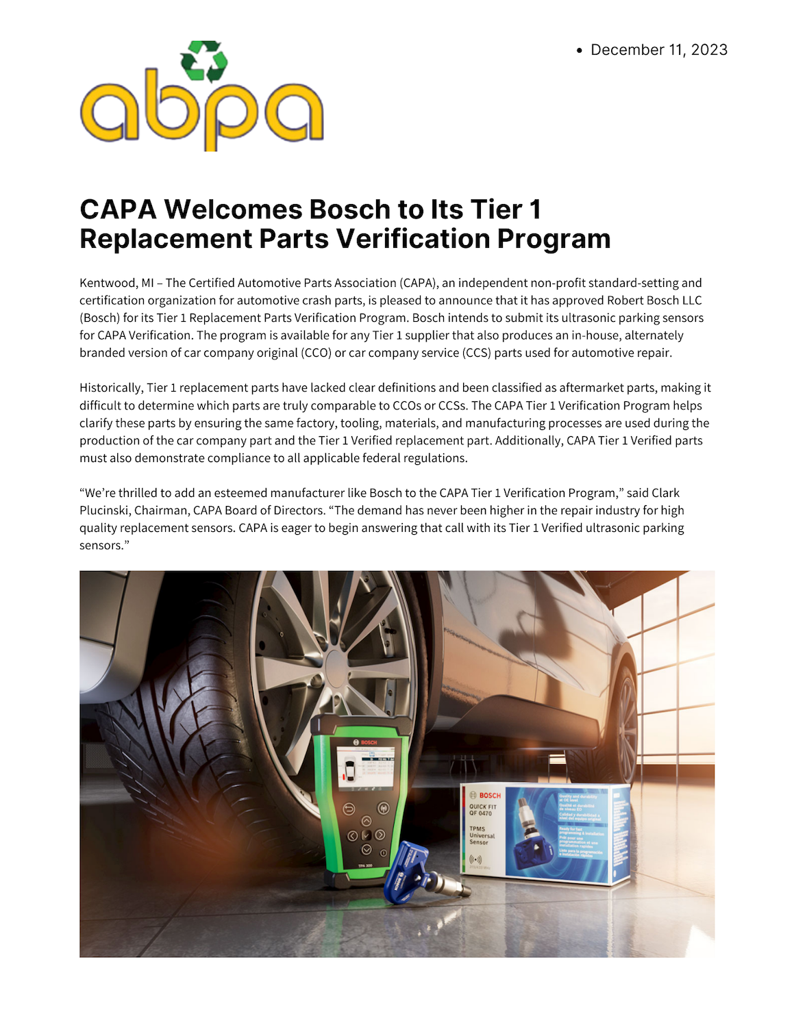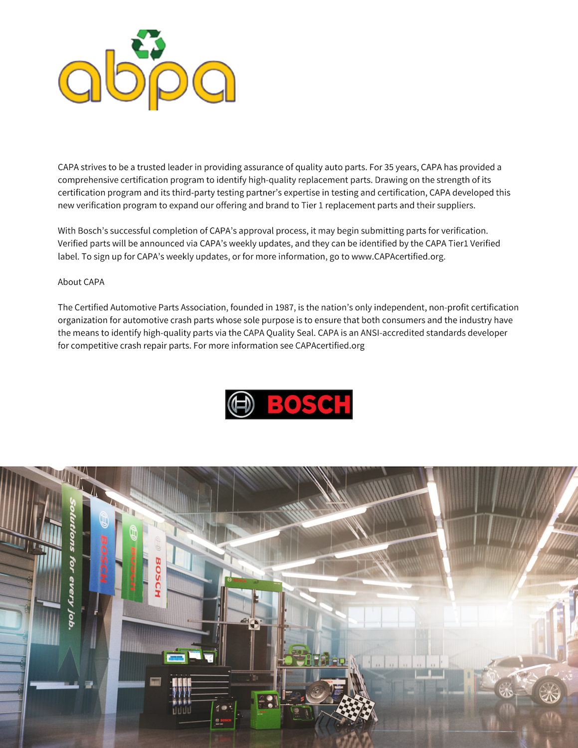 CAPA Welcomes Bosch to Its Tier 1 Replacement Parts Verification Program