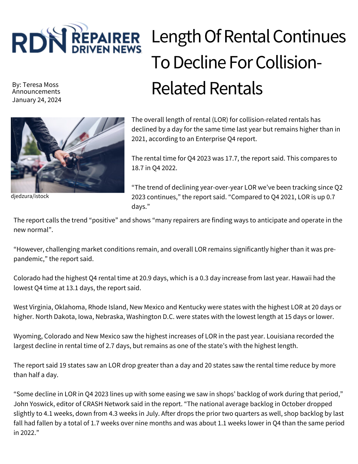 Length Of Rental Continues To Decline For Collision-Related Rentals